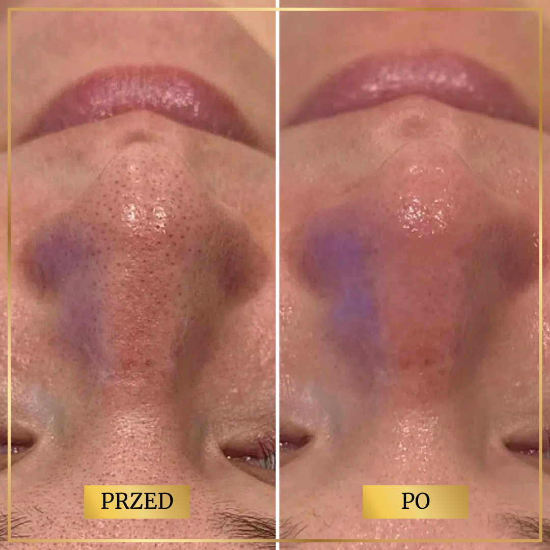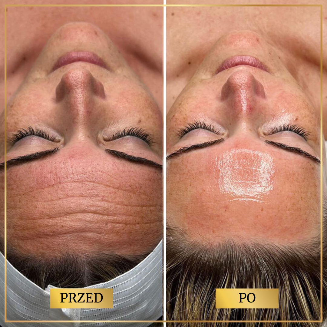Skóra jest czysta, gładka, napięta, rozświetlona i wygląda młodziej – bez bólu, bez igieł, bez podrażnień.