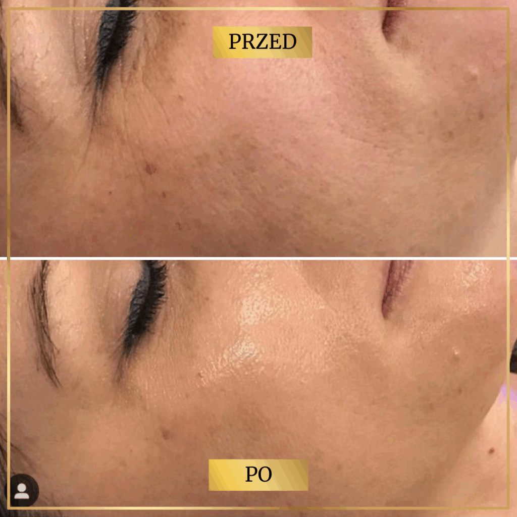 Skóra staje się wyraźnie gładsza, jaśniejsza i świeższa — bez podrażnień i złuszczania.